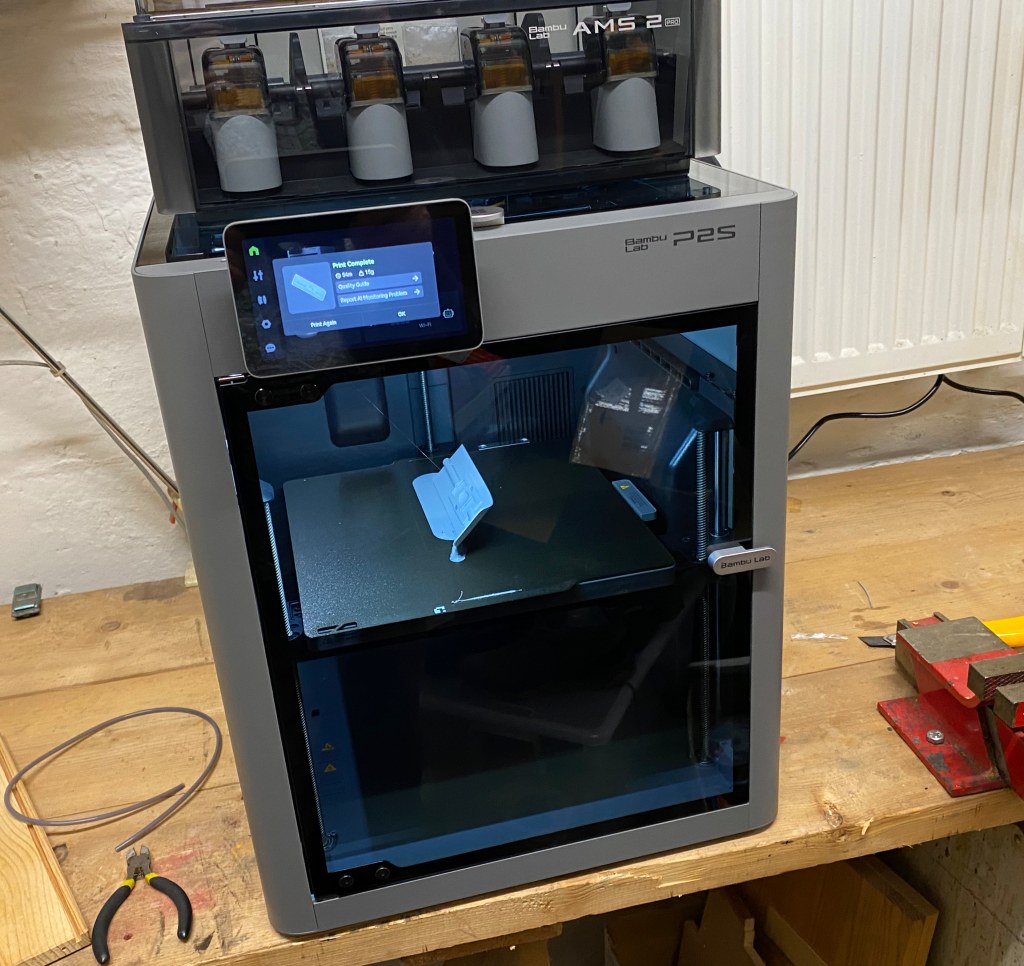 Tiskárnu jsem vybíral jako nástupce tiskárny 3D tiskárna Průša Mini. Chtěl jsem tiskárnu, která mi umožní tisknout větší díly. Chtěl jsem něco, co dokáže tisknout díly 350 x 350 nebo 400 x 400 mm, ale když jsem zjistil co mám na výběr (11/2025), za jaké ceny a s jakými parametry, tak jsem rozhodl pro menší tiskárnu. Rozhodl jsem se pořídit tiskárnu Bambu LAB P2S. Rozhodl poměr cena / výkon a dobré reference už od jejího předchůdce P1S.