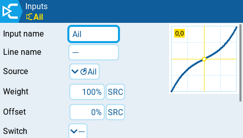 Model Settings - INPUTS. Ovládaící prvky modelu si definuji v INPUTS, to mi dává možnost snadno pozdìji mìnit jejich chování.