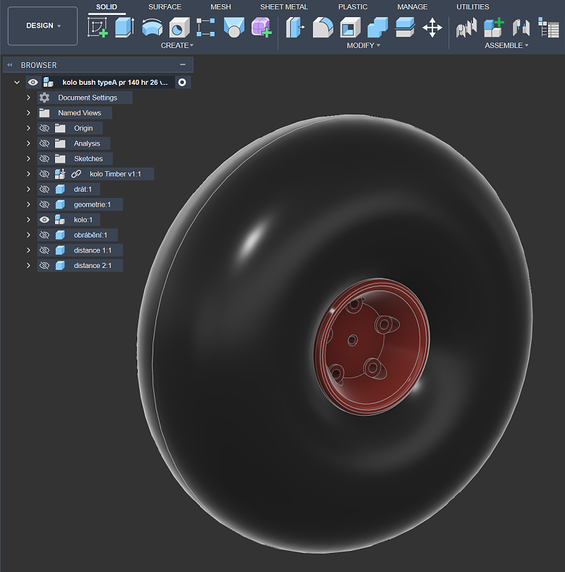 Pneumatika se vyrb po plkch, vedou k tomu technologick dvody. Disk tisknu z PETG tak rozdlen na plky, u toho je hlavnm dvodem mont kola. Ktesl v Autodesk Fusion.