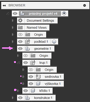 Zde na obrázku výše je typický obsah složky ve Fusionu pro jeden model. Co řádek, to jeden výkres - v řeči Fusionu návrh (viz názvosloví ve Fusionu)