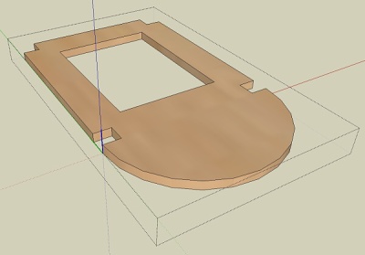 Jako posledn prava nm zbv vytvoit otvor pro kabely. Aktivujte nstroj Circle (kruh) a nakreslete jej do dan polohy na pepku polomr krunice se zad obvyklm zpsobem v oknku vpravo dole. Pi umstn stedu si ppadn pomozte konstruknmi pmkami (viz lekce 01). Nakonec pouijte nstroj Push/Pull (tlait/thnout) a provete zatlaen k protilehl ploe stejn tak, jak to bylo s okrajem pepky. Dra by mla bt skrz. Zrute konstrukn pmky, mezernkem se vrate do nstroje Select (vbr) a vystupte z editace komponenty kliknutm levm tlatkem myi nkam mimo komponentu.