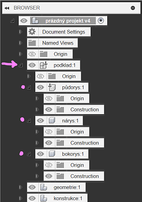 Zde na obrázku výše je typický obsah složky ve Fusionu pro jeden model. Co řádek, to jeden výkres - v řeči Fusionu návrh (viz názvosloví ve Fusionu)