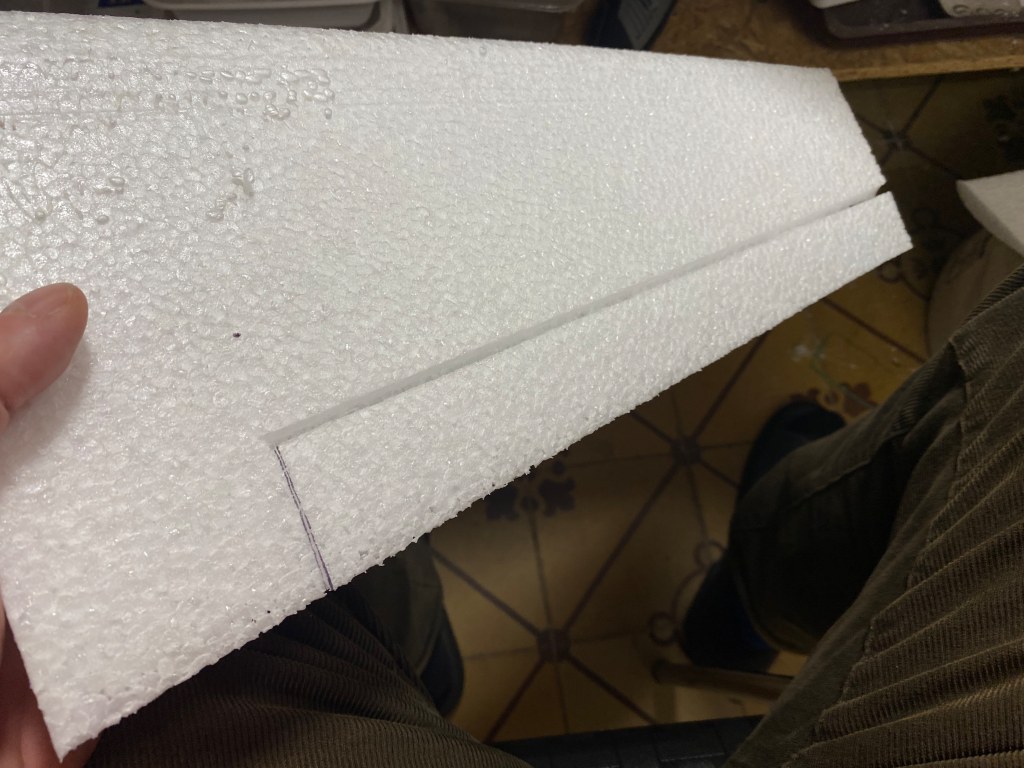 Poprvé chci dělat panty křidélek vyříznutím drážky tak, aby zůstal materiál, přes který se bude křidélko ohýbat.