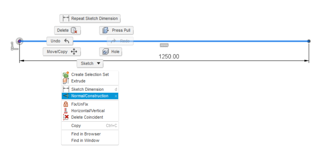 Fusion umožòuje vytváøet konstrukèní èáry. Ta se vytvoøí z bìžné èáry: