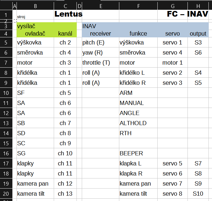 Třeba křidýlka jsou do modelu jako jeden kanál, ovládání leveho a pravého křidýlka každého svým servem zařizuje FC.